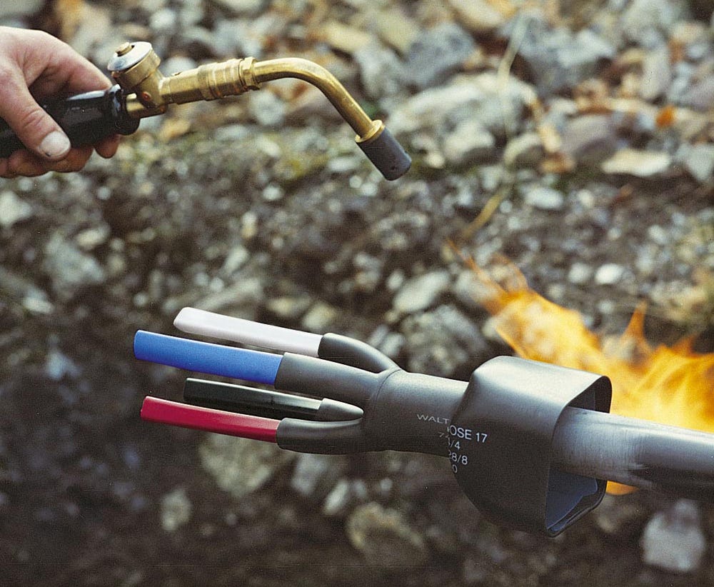 KEV Heatshrink Gloves (boots) are used to seal and waterproof cable terminations, by sealing the insulated conductors to the cable jacket. They have a hot melt glue liner which melts while the glove is shrinking and creates a strong bond between the glove and the cable.