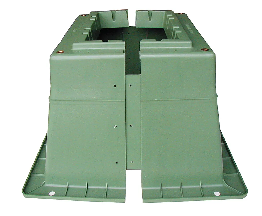 The CABAC Pillar Box Base is an all-purpose moulded plastic base to suit direct burial or slab mounting. The base can be directly buried, or bolted to a slab. For high stability on steep slopes or unstable soils the base can be attached to a steel framework and stabilised soil/concrete poured around the base.