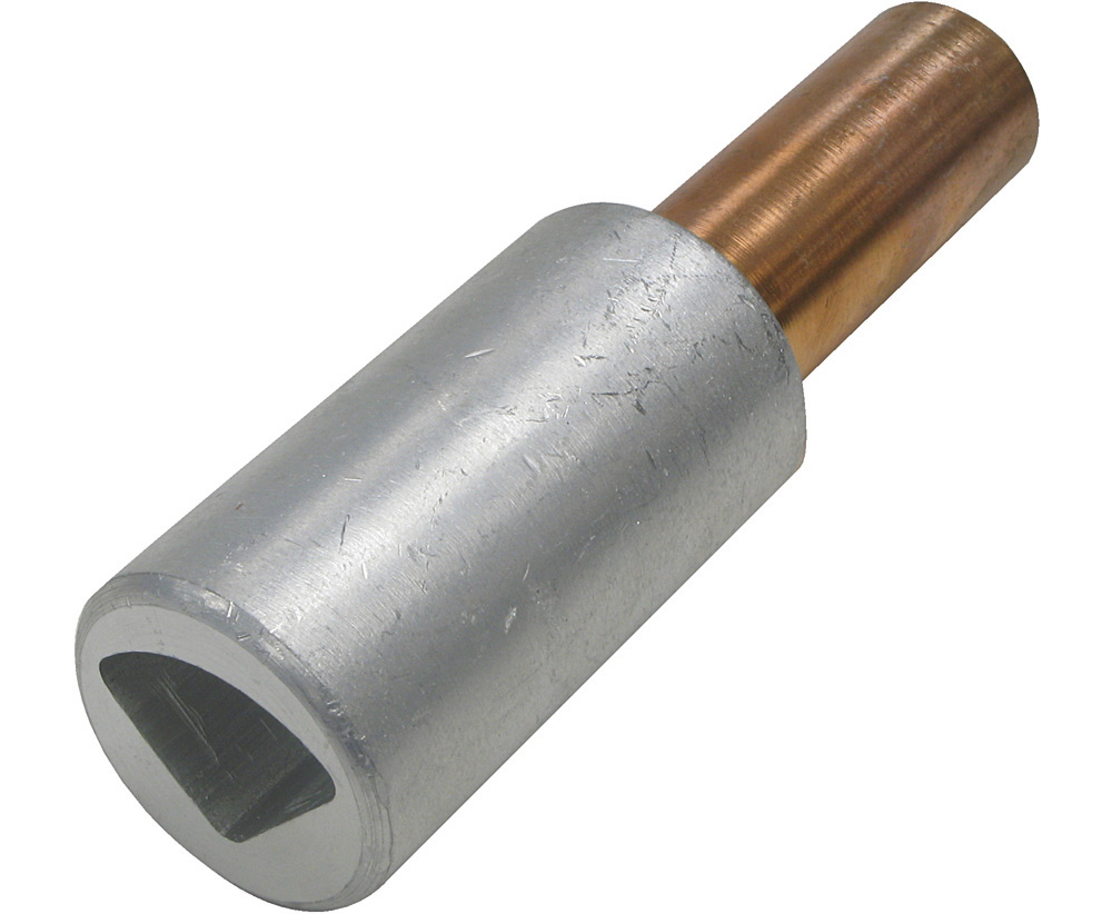 Bi-metal sector link designed to join 185mm² 4-core aluminium sector cable to 120mm² copper conductors using standard hex crimp dies.