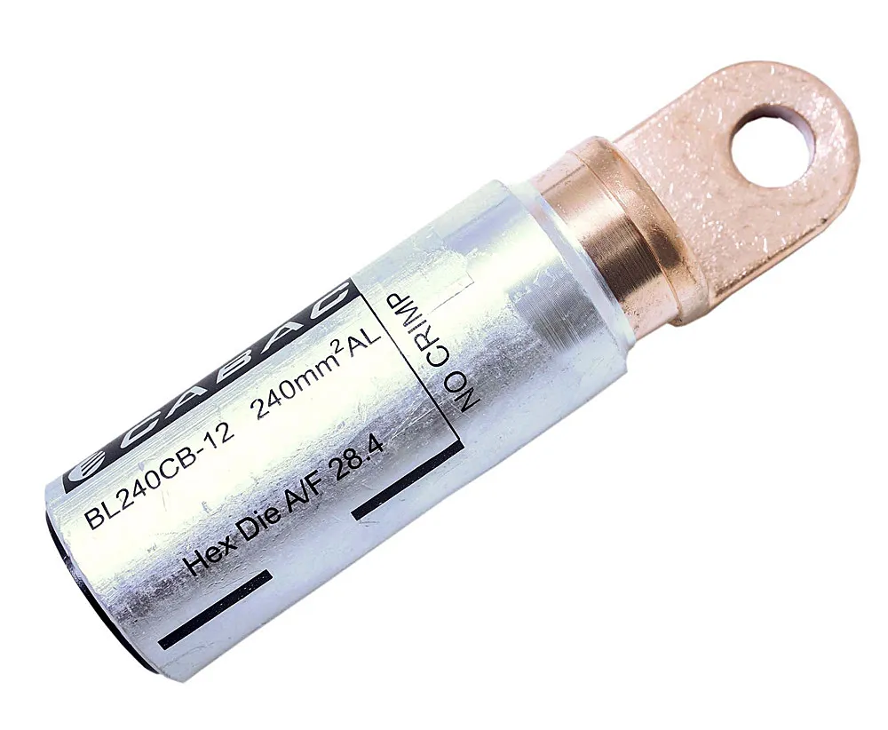 When terminating large aluminium conductors to copper circuit breaker terminals, reliability at the connection point is critical. The CABAC Bi-Metal Circuit Breaker Lug 240mm² 12mm Stud BL240CB-12 is engineered to deliver a strong, electrically sound joint using a friction welding process that bonds the aluminium barrel to the copper palm.