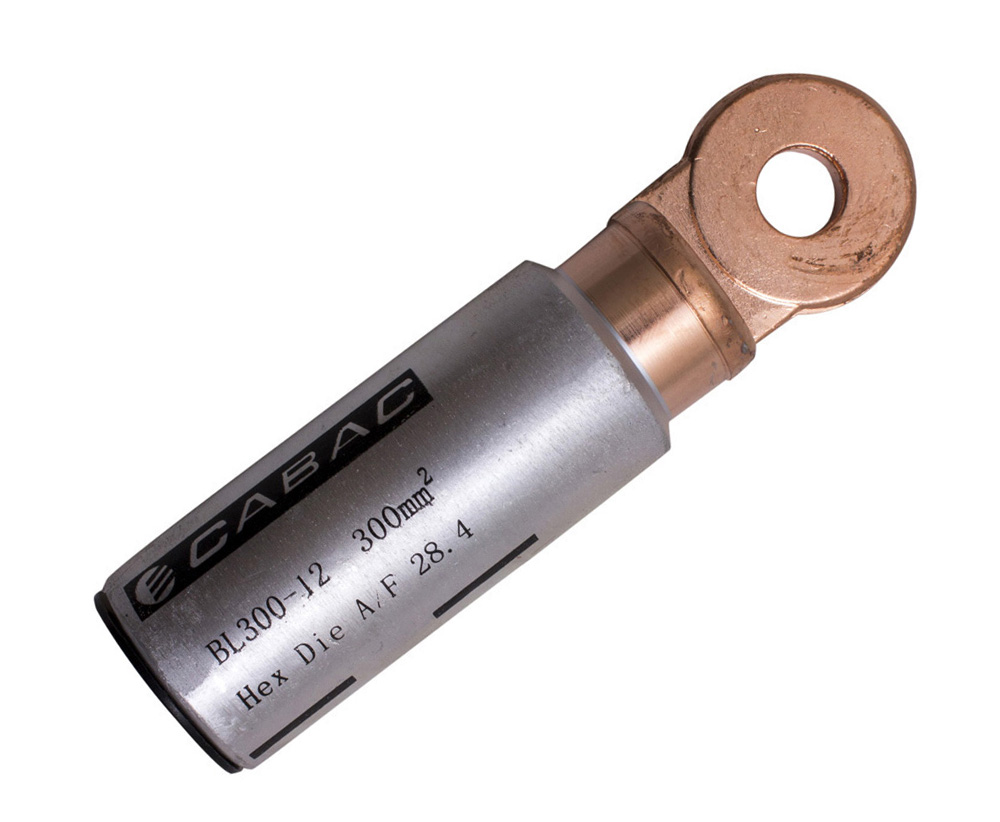 The CABAC BL300-12 Bi-Metal Lug is designed to deliver a dependable connection between aluminium conductors and copper equipment, making it ideal for heavy-duty electrical installations. Built from 99.6% pure aluminium and 99.9% pure copper, the lug uses a friction-welded joint that creates a strong, electrically sound bond while preventing electrolysis between dissimilar metals.