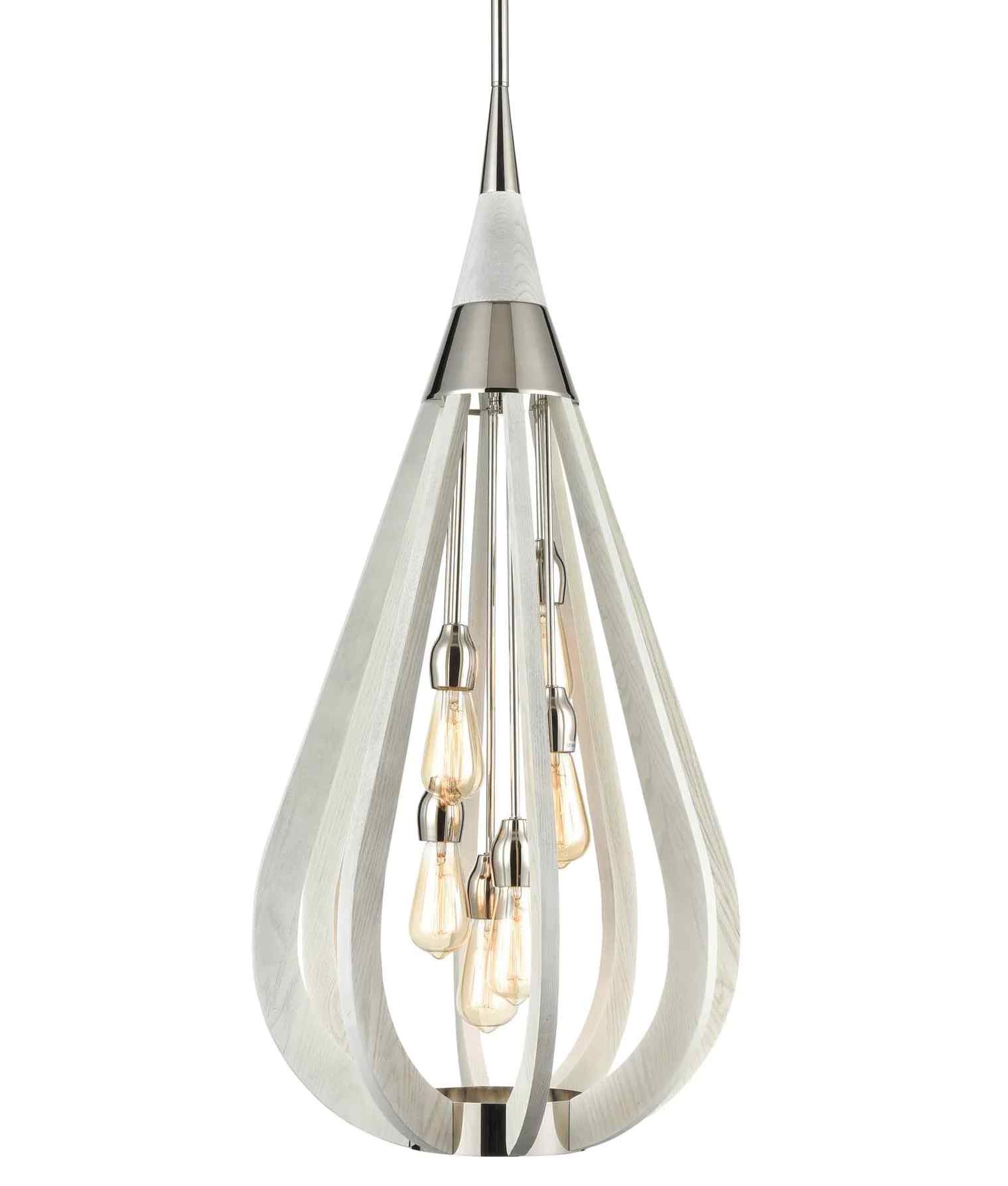 CLA BONITO: Rustic Large Taupe / Winter Moss Wood Tear Drop Pendant Light