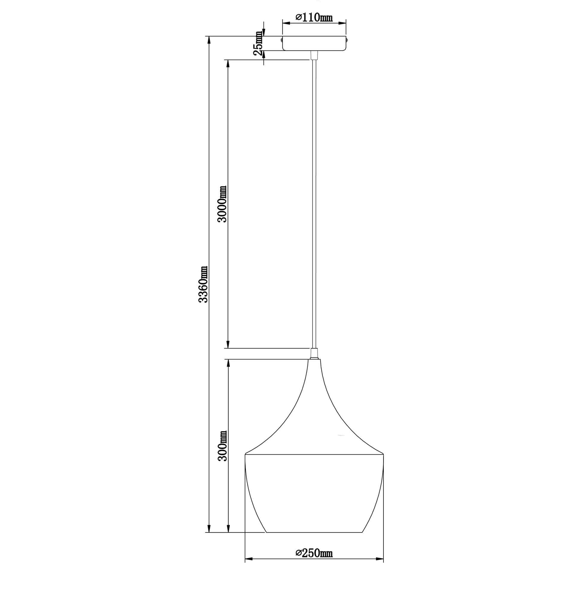 PENDANT ES Blk ANGLED BELL OD250mm