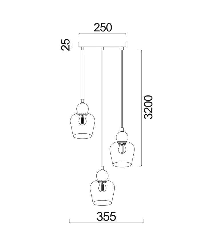 PENDANT ES x 3 72W Bronze Amber Glass ELLIPSE RND Base