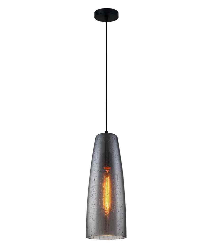 CLA CHUVA: Smokey Black Mirror Finish Glass with Rain Drop Effect Long Cone Pendant Light