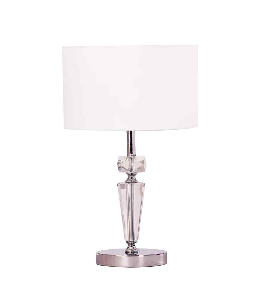TABLE ES White DRUM Shade & Chrome Metal Base w/Crystal Body OD(Shade ) 300mm