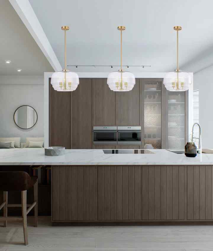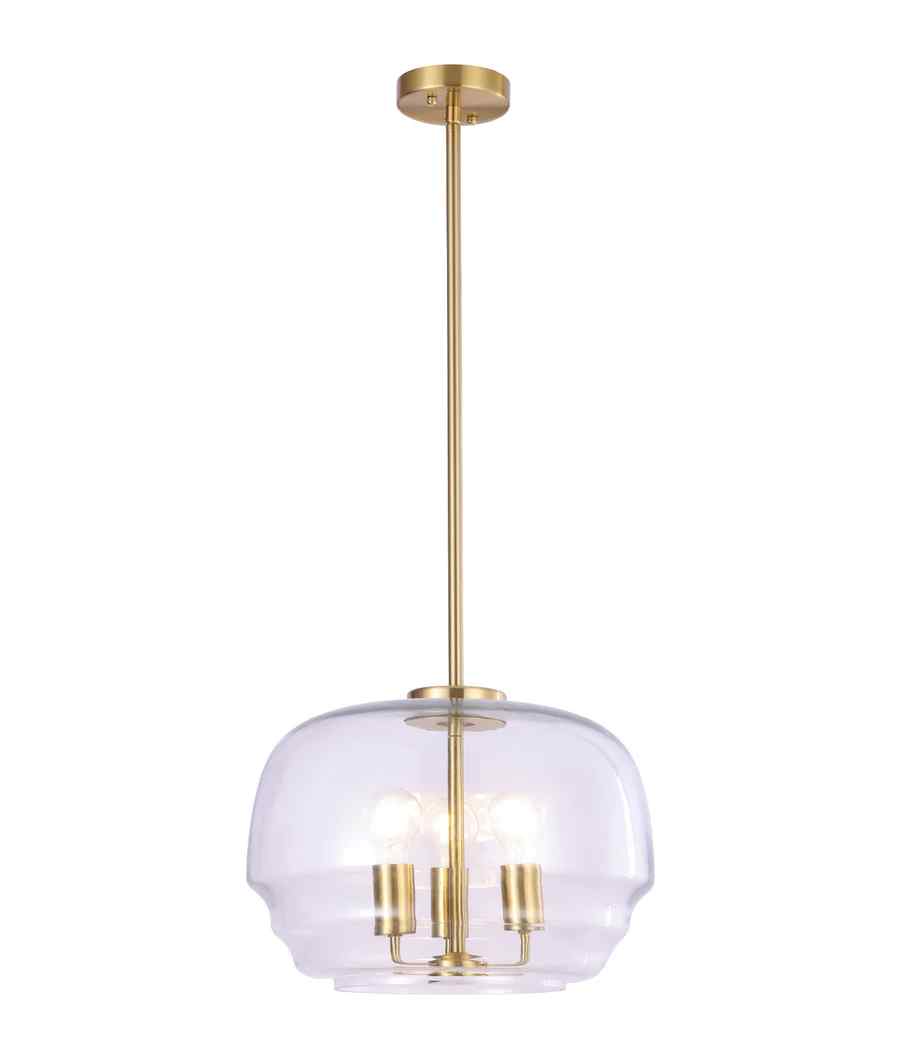 PENDANT 3 x ES Clear Glass Shade w/Brass Hardware Wine Glass OD400mm