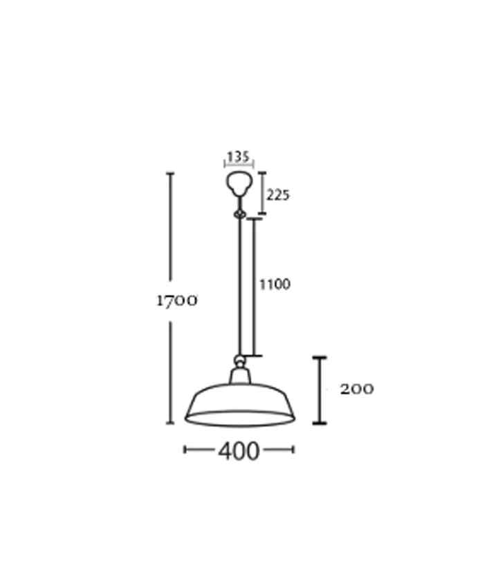 PENDANT ES 60W MATT BLK ANGLED DOME IP23 OD 400mm