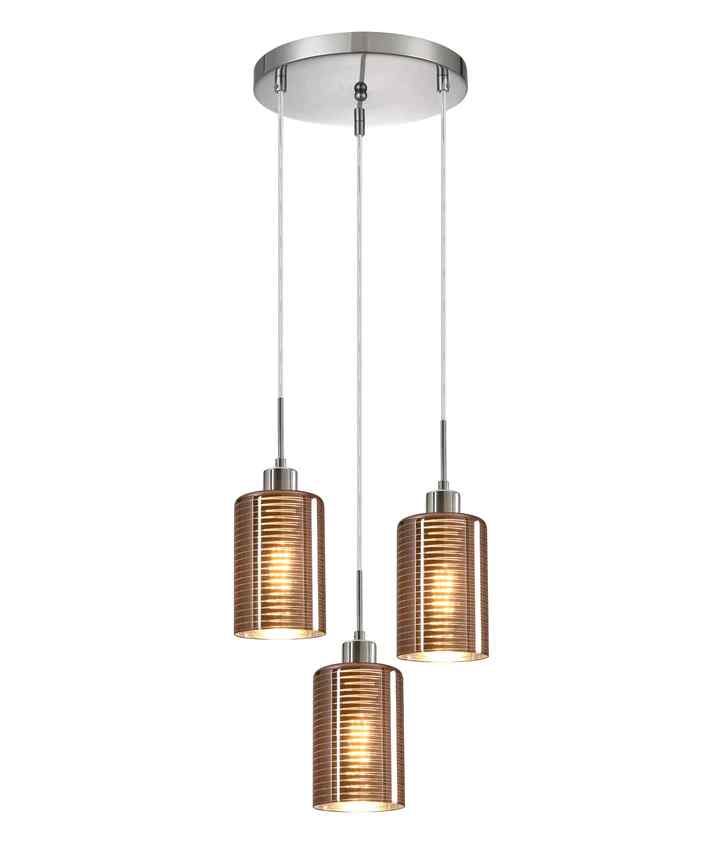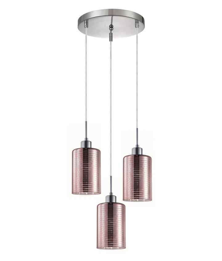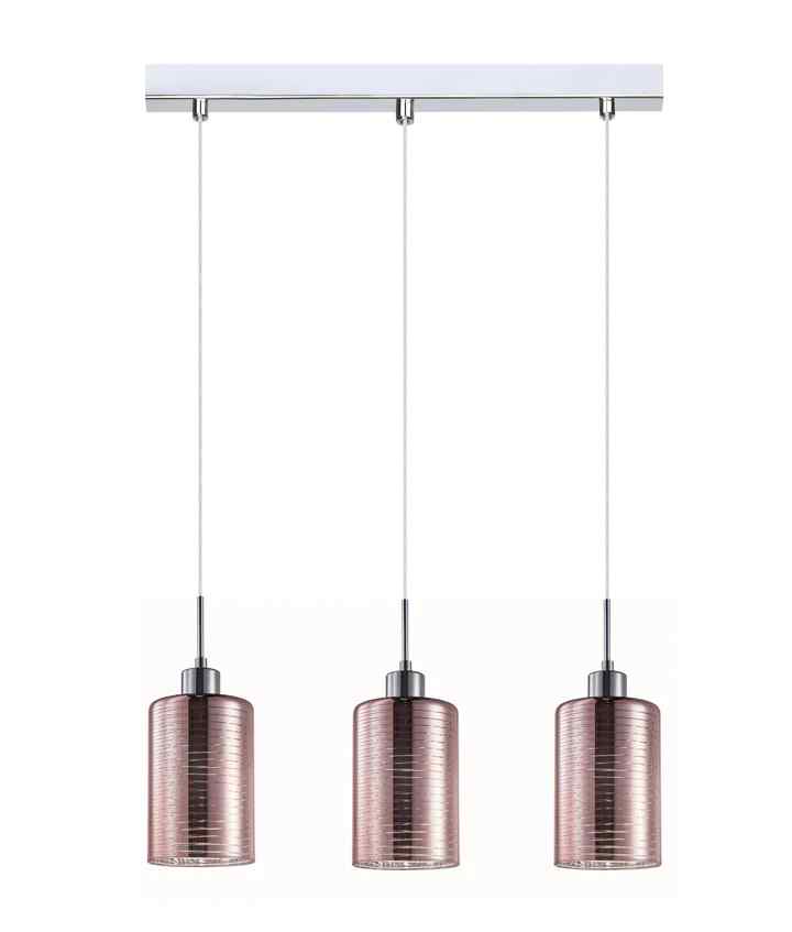 PENDANT ES x 3 72W Rose Gold Glass Oblong RND Base