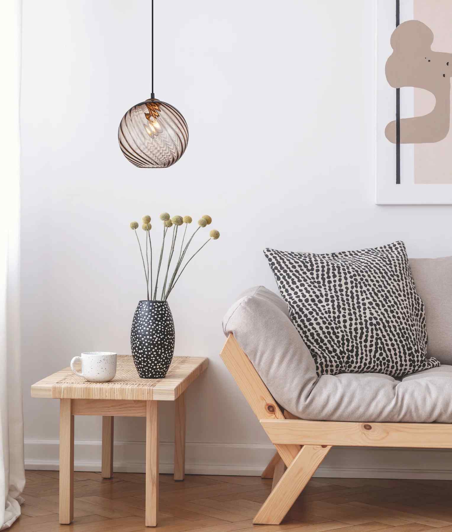 PENDANT ES 72W Smokey BLK Wine Glass Wavy Finish w/ BLK Highlight OD250mm
