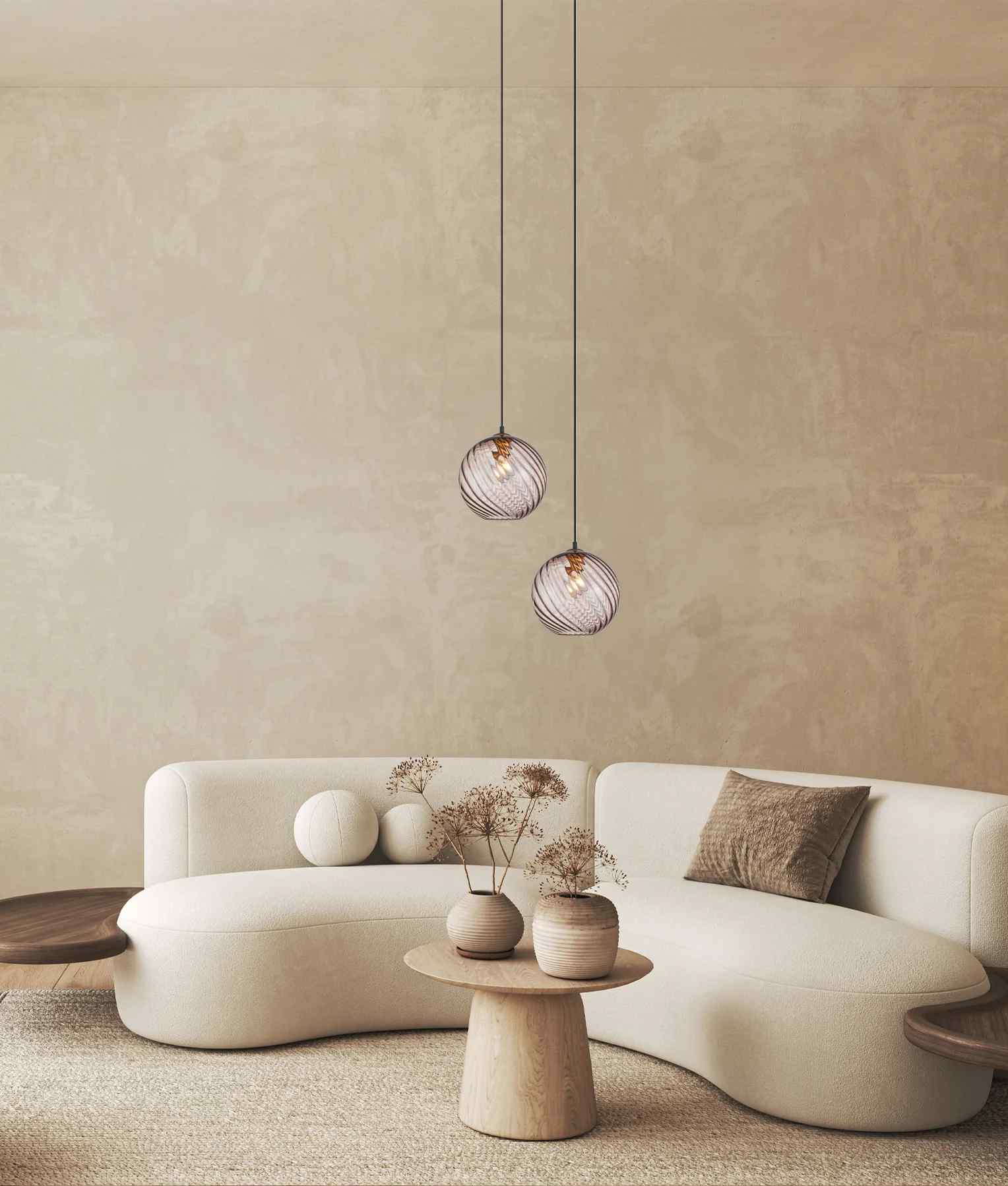 CLA ESPIRAL: Interior Wine Glass Shade Wavy Finish Round Pendant Lights
