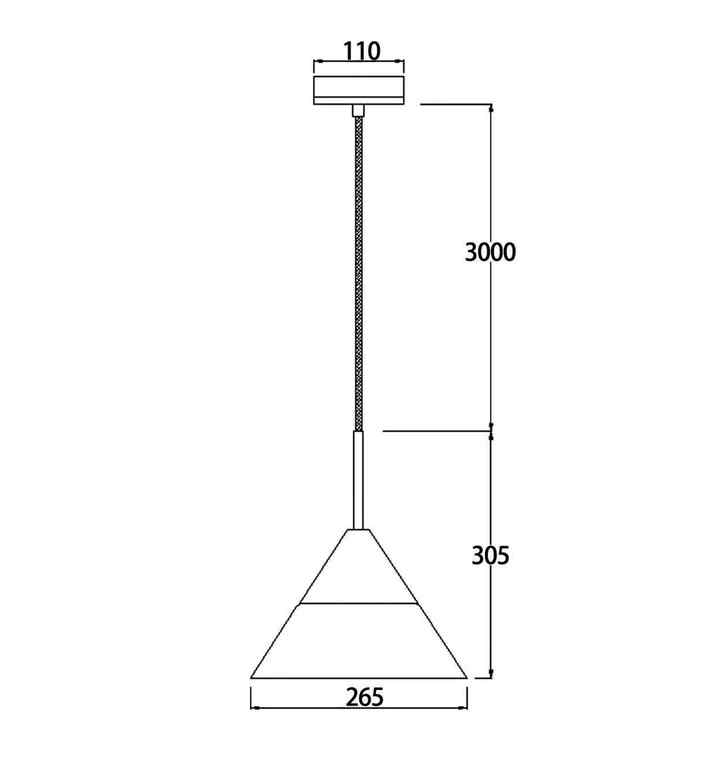 PENDANT ES Opal Glass SML CONE w/wood highlights OD265mm