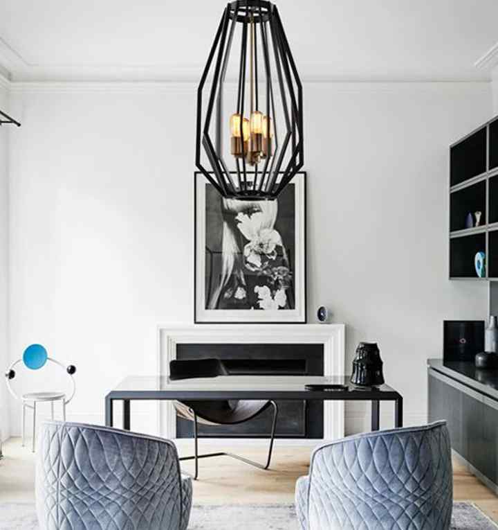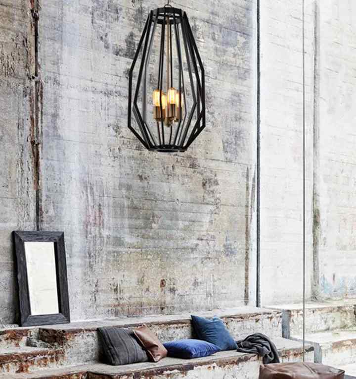 CLA GAMBA: Industrial Black Rustic Narrow Angular Cage Pendant Light