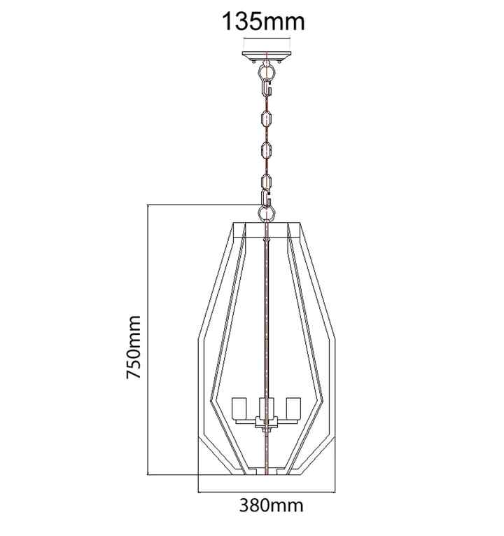 PENDANT ES X 4 Antique Brass NARROW ANGULAR CAGE OD380mm