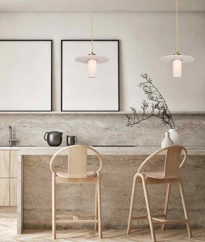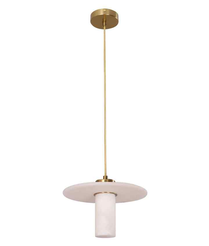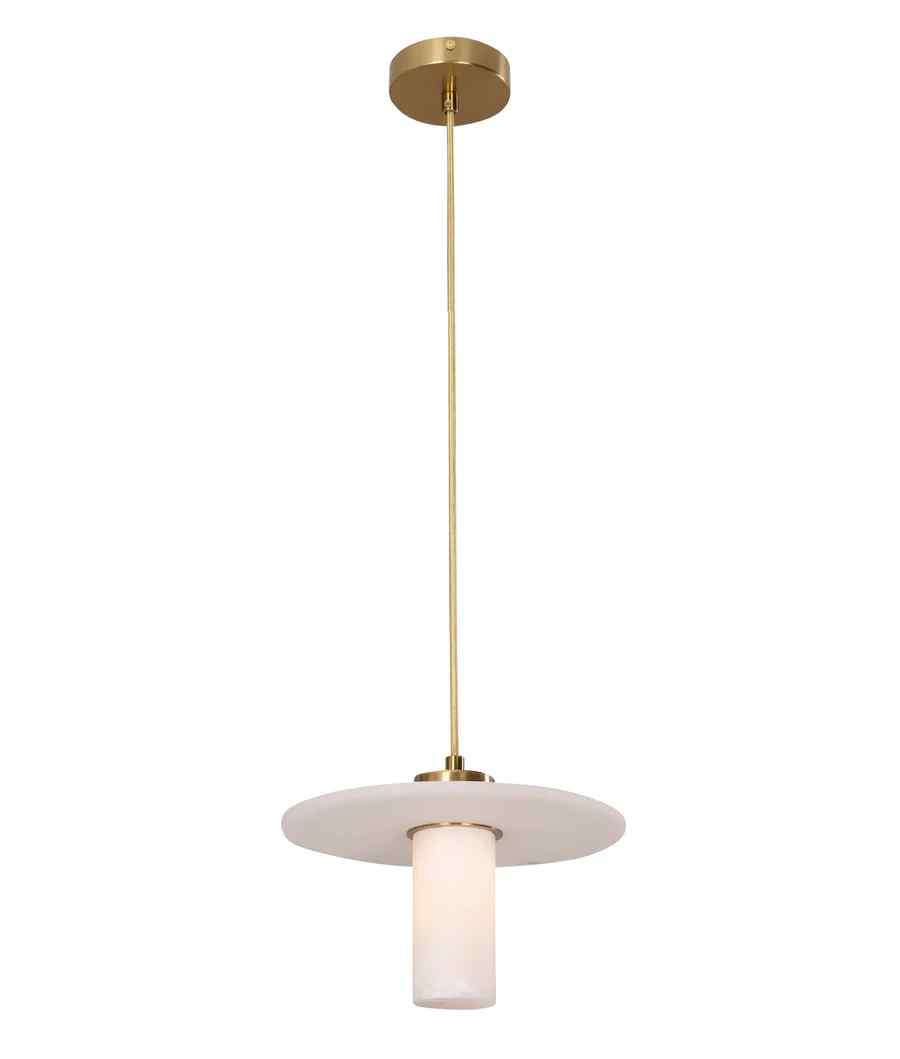 CLA LUCERNA: Interior Cylinder Round Hat Alabaster Shade Brass Highlight Pendant Light