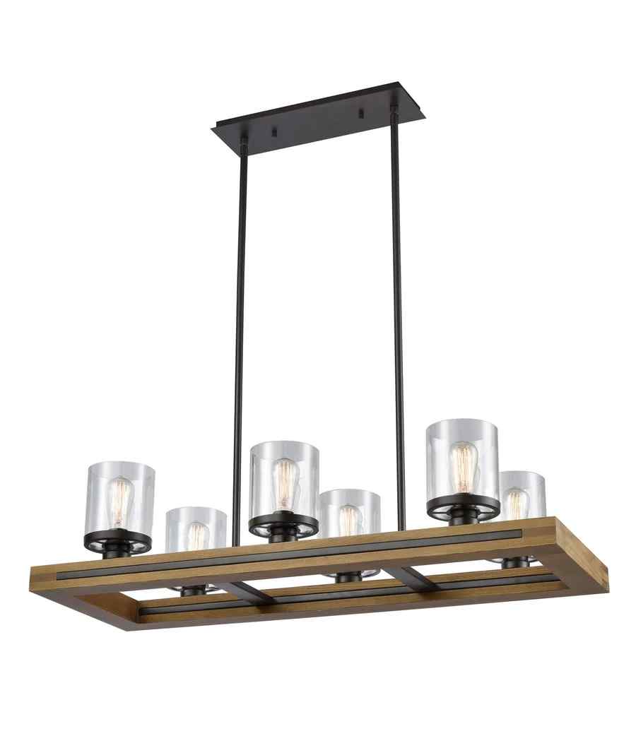PENDANT ESx6 Warm Chestnut Wood RECT w/Clr Glass L1035mm