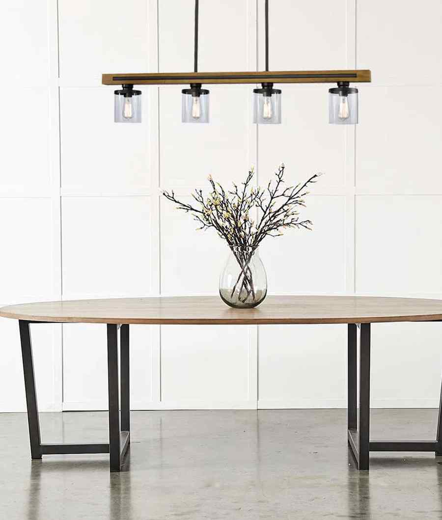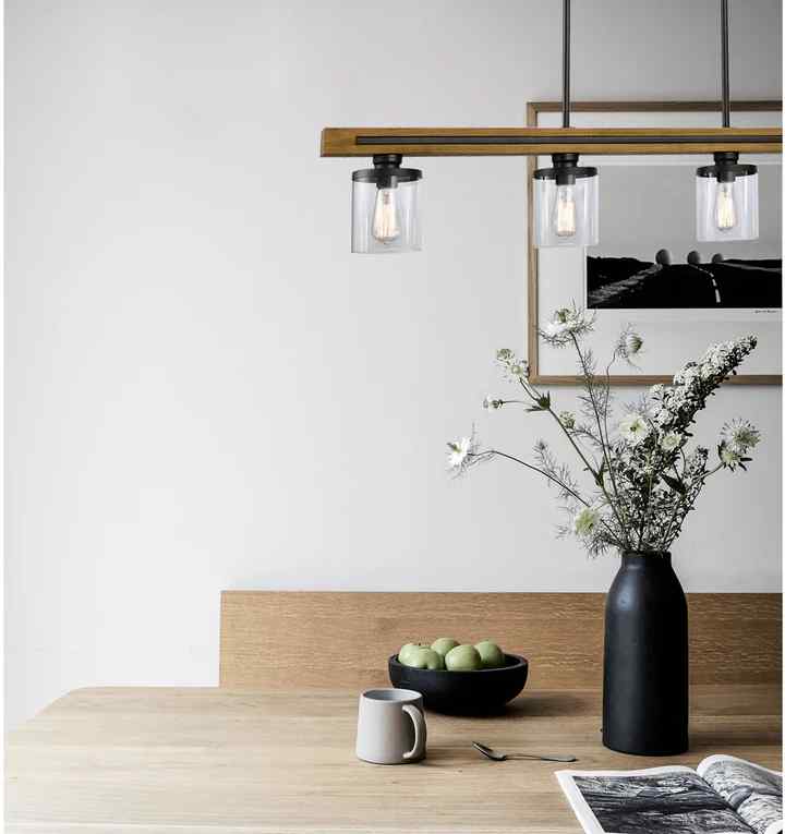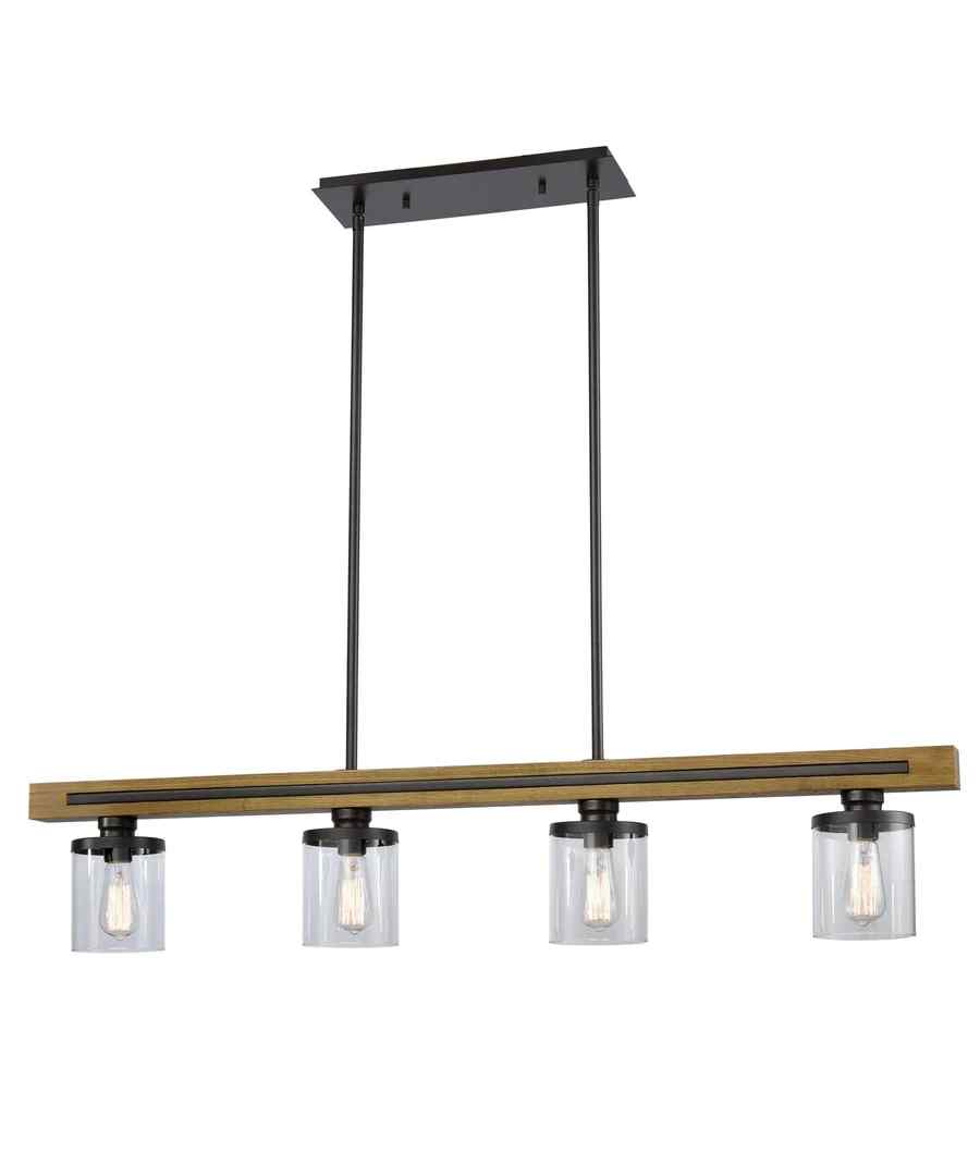 PENDANT ESx4 Warm Chestnut Wood BAR w/Clr Glass L1280mm