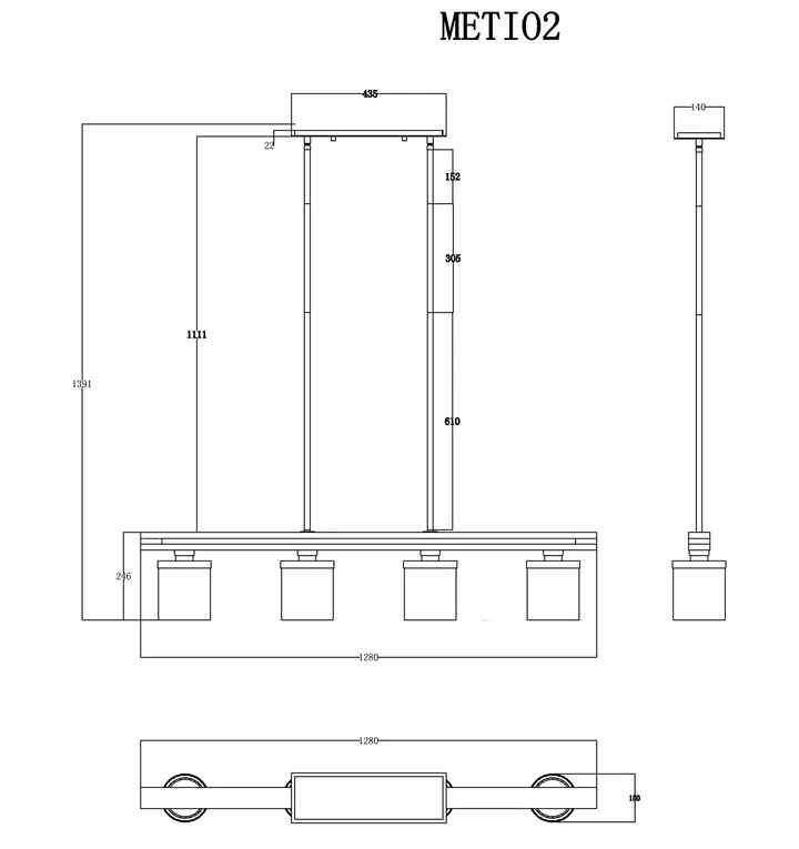 Suspension: rod, see line drawings (Any combination of rods can be used)