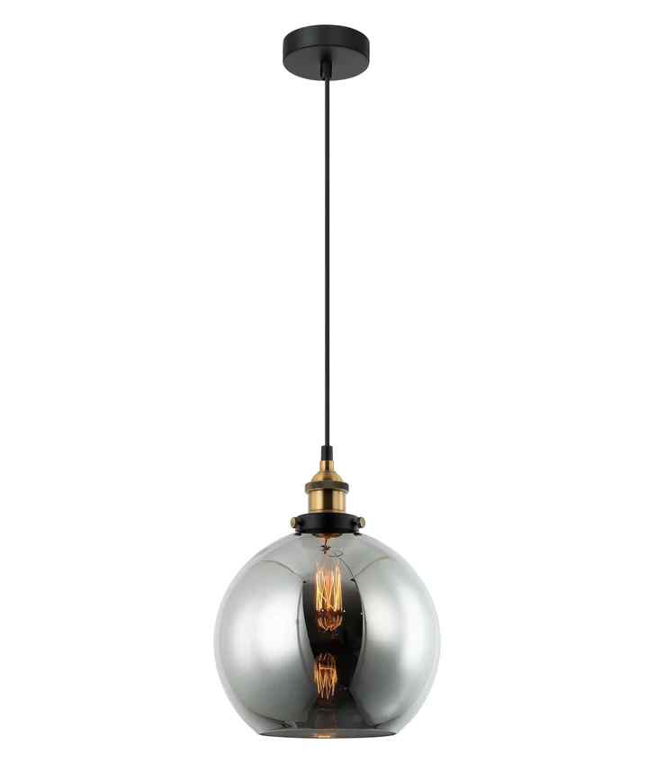PENDANT ES 40W Black Smoke Wine Glass Antique Brass Highlight
