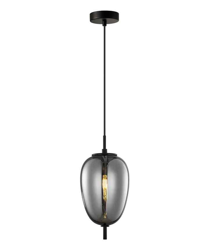 PENDANT SES 10W Oval Smokey Black (Mirror Finish) Glass w/Black Highlight OD160mm x H340mm