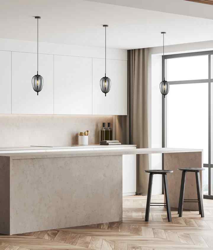CLA PINO: Interior Opal Matte / Smokey Black Mirror Finish Glass Oval Pendant Lights
