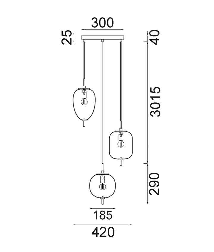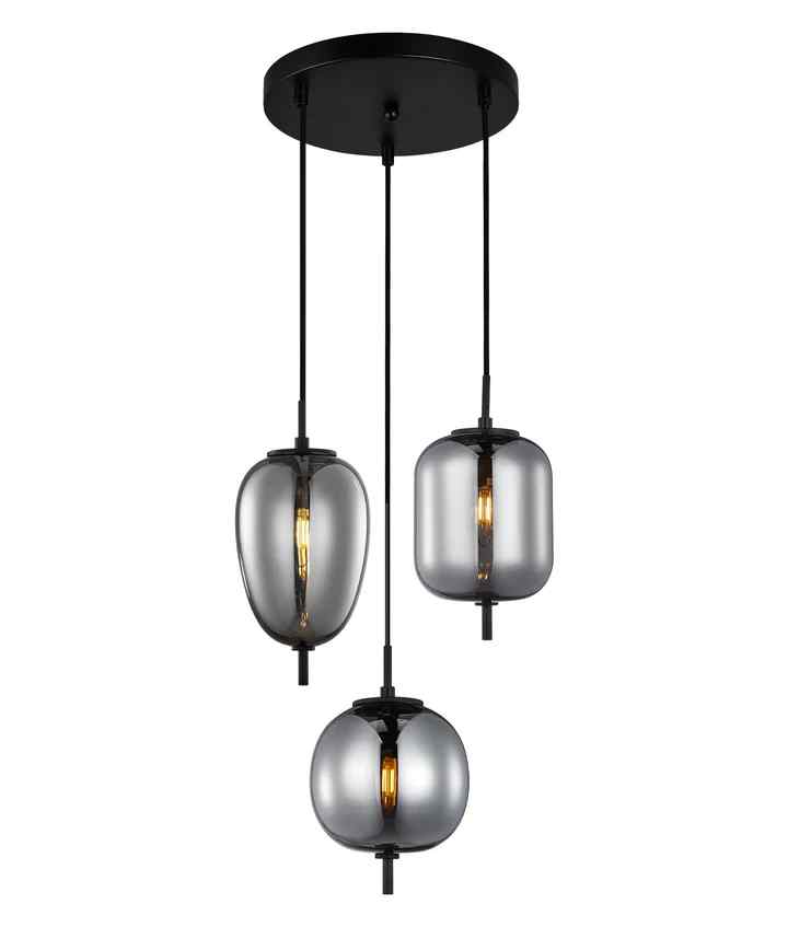 PENDANT SES x 3 10W Smokey Black (Mirror Finish) Glass w/Black Highlight OD420mm RND Base