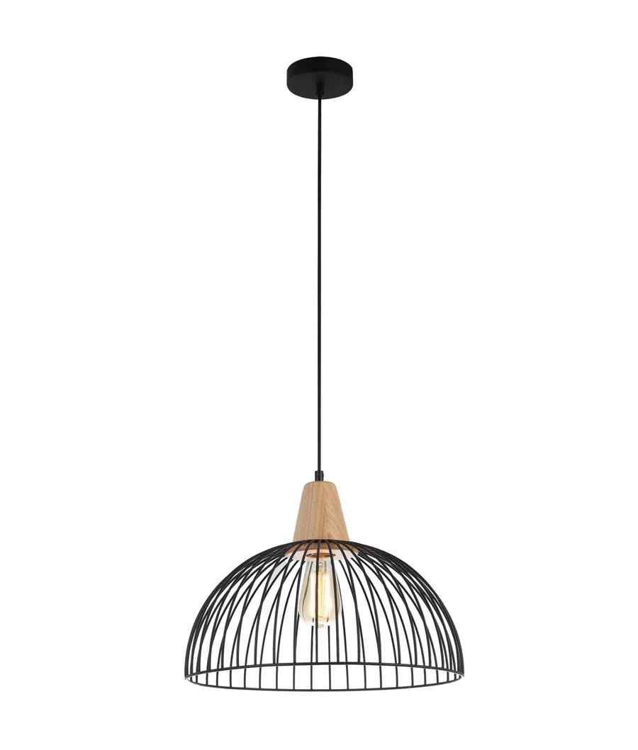 CLA STRAND: Iron and Wood Dome Cage Pendant Lights