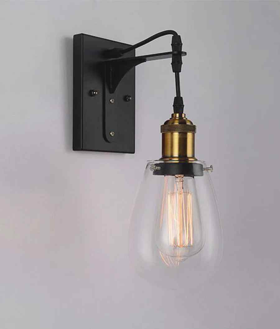 CLA STRUNG: Interior Decorative Black / Antique Brass and Clear Pear Shape Glass Wall Light