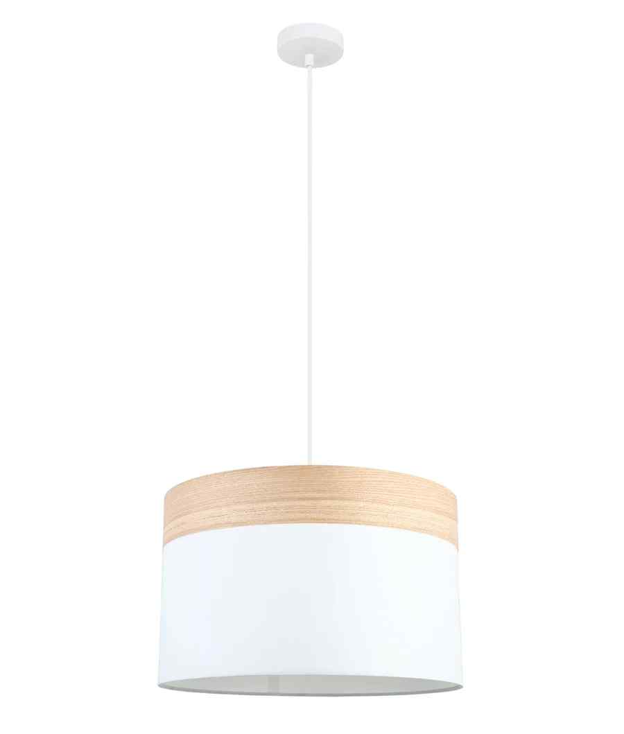 PENDANT ES Wh Cloth LGE RND w/Wood Veneer Trim OD400mm
