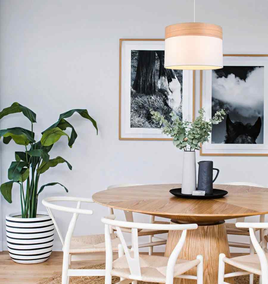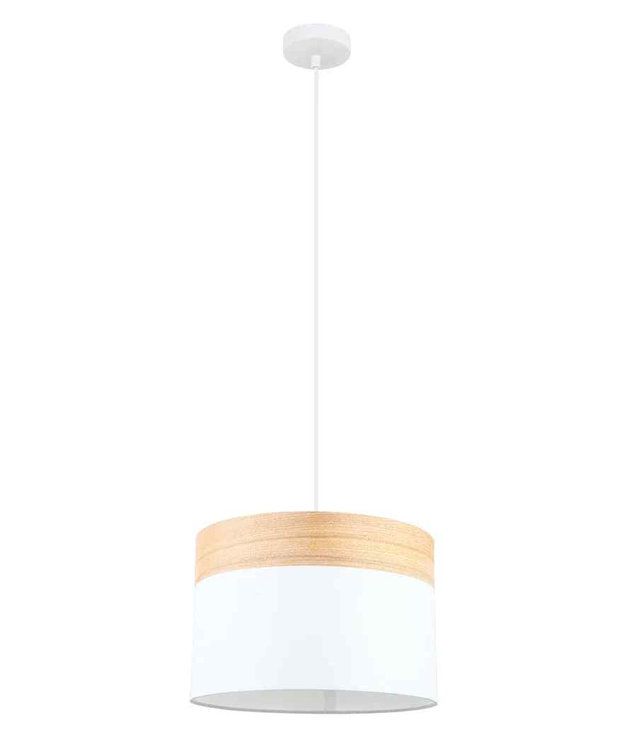 CLA TAMBURA: Scandinavian Medium Drum Cloth Shade with Wood Veneer Trim Pendant Lights