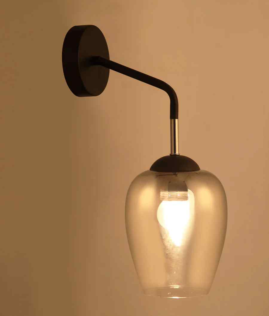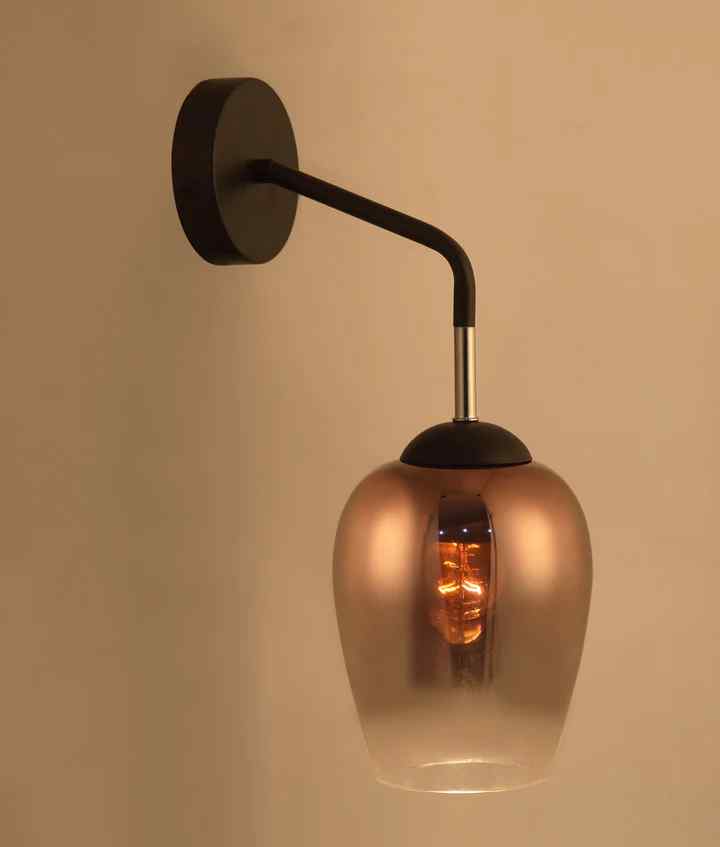 WALL Int S/M ES Copper Glass w/ Blk Iron Bracket