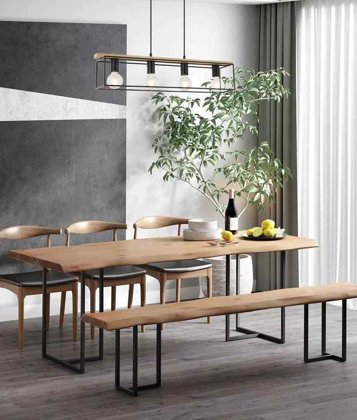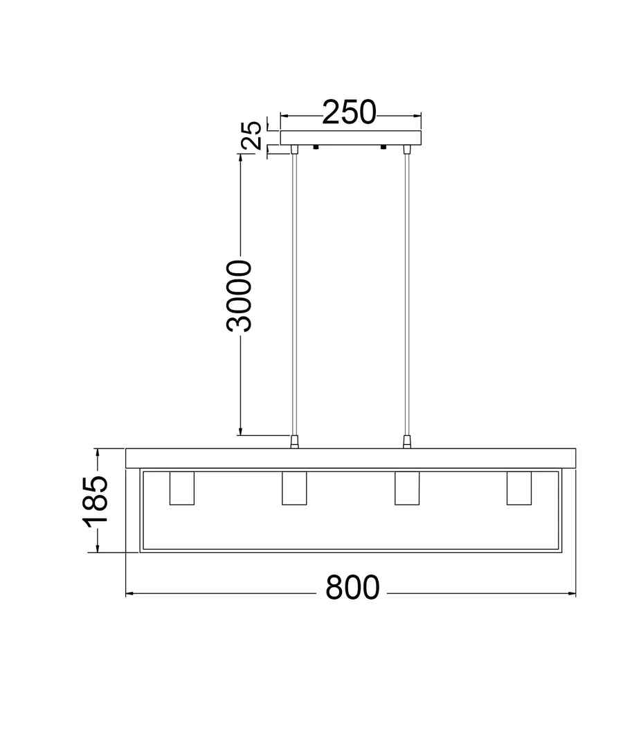 PENDANT ESx4 Rect Natural Wood & Blk Hardware Iron L 800 mm