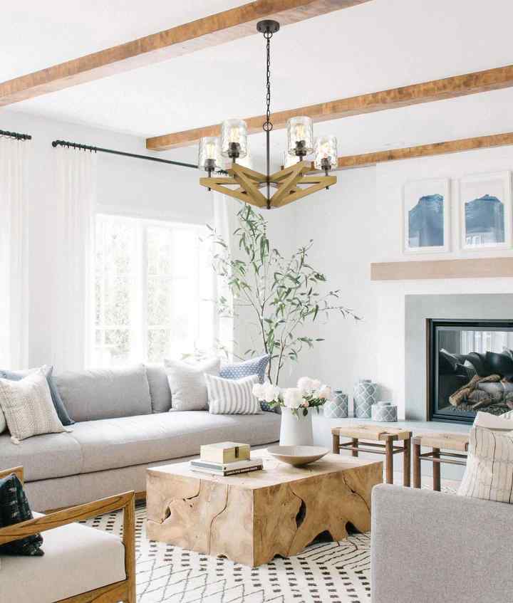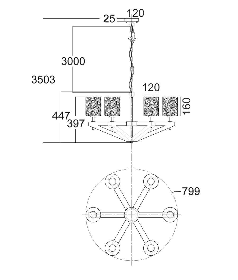 PENDANT ESx6 OD799mm Candelabra Oak Wood