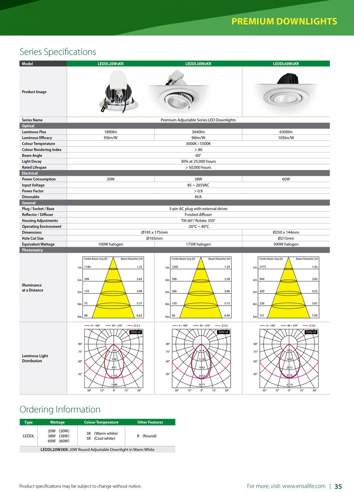 The ENSA™ premium adjustable downlight range provides a versatile series of LED downlights for general purpose illumination in retail, residential or office environments. They are ideal for efficient tailored lighting applications, such as spot and feature lighting.