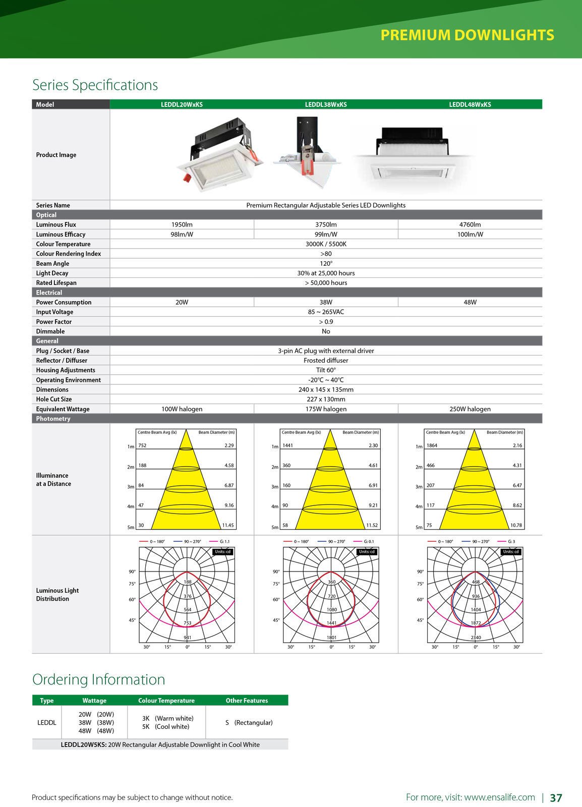 The ENSA™ premium adjustable downlight range provides a versatile series of LED downlights for general purpose illumination in retail, residential or office environments. Their rectangular shape makes them ideal for bay or wall lighting in in retail applications.