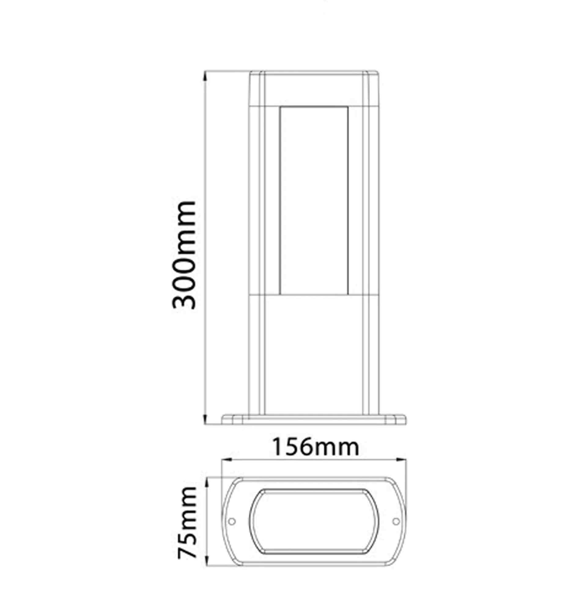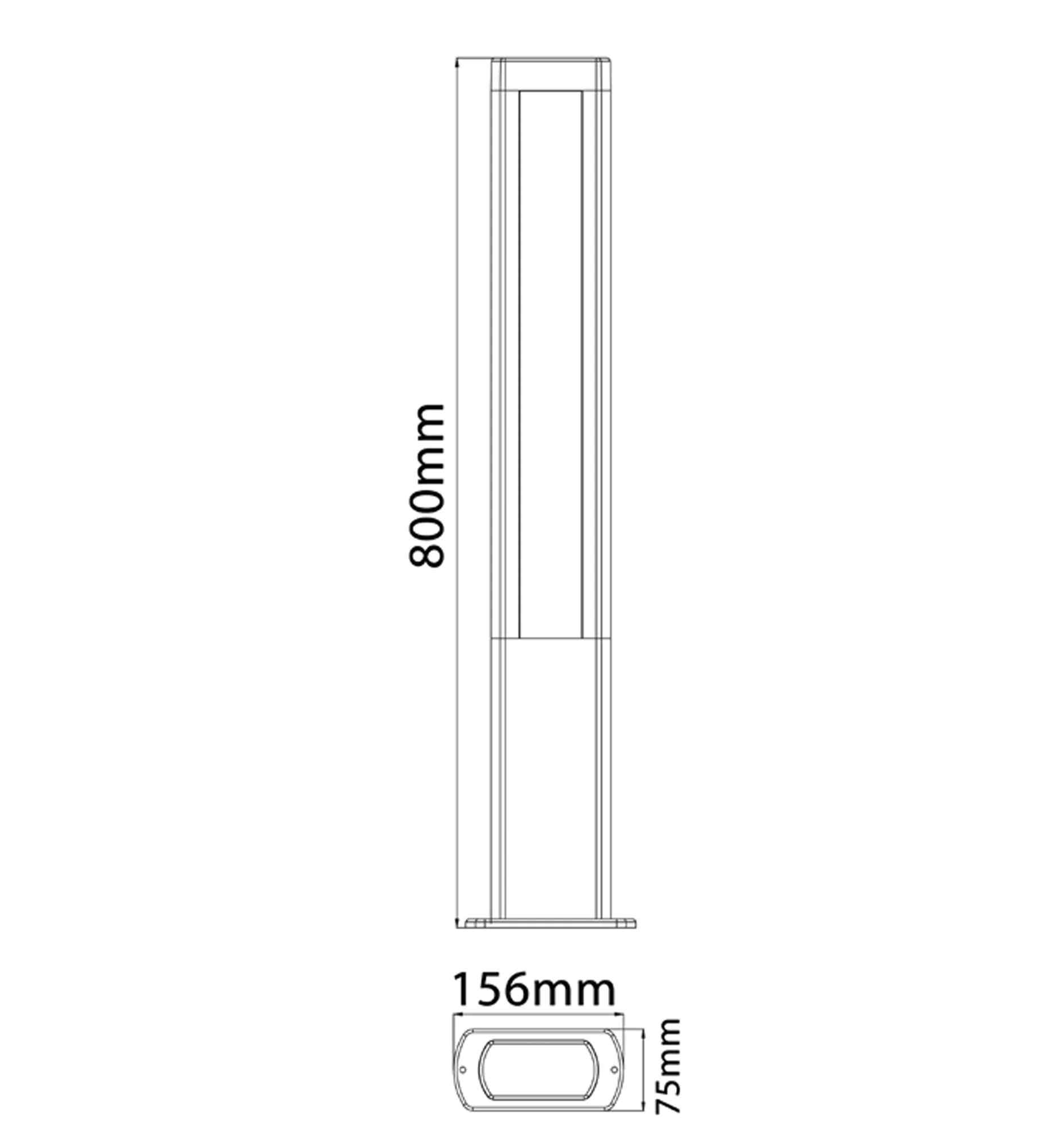 BOLLARD 12.5W RECT Matt Blk 3K IP54 H800mm 2 Diff 756 Lm