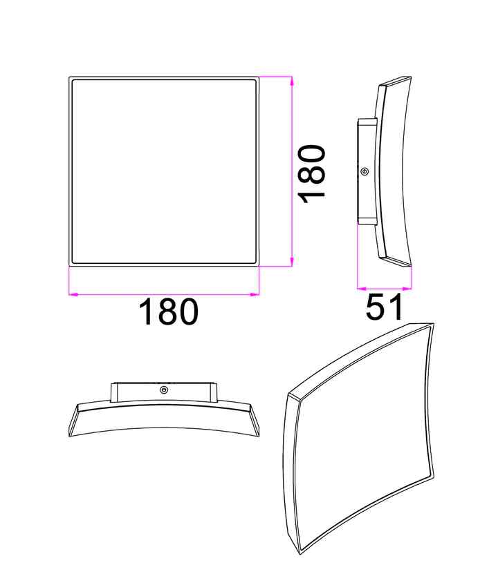 WALL S/M 13W LED TRI 1111Lm IP65 Curved Square Dark Grey