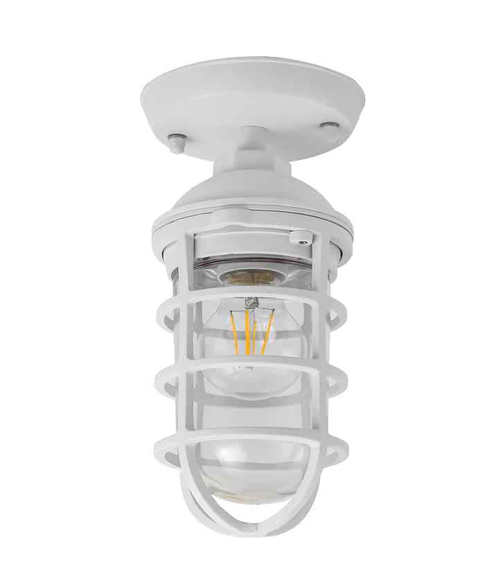 Wall/Ceiling S/M ES Cylinder Matt Wh Alum & Glass IP44 w/cage