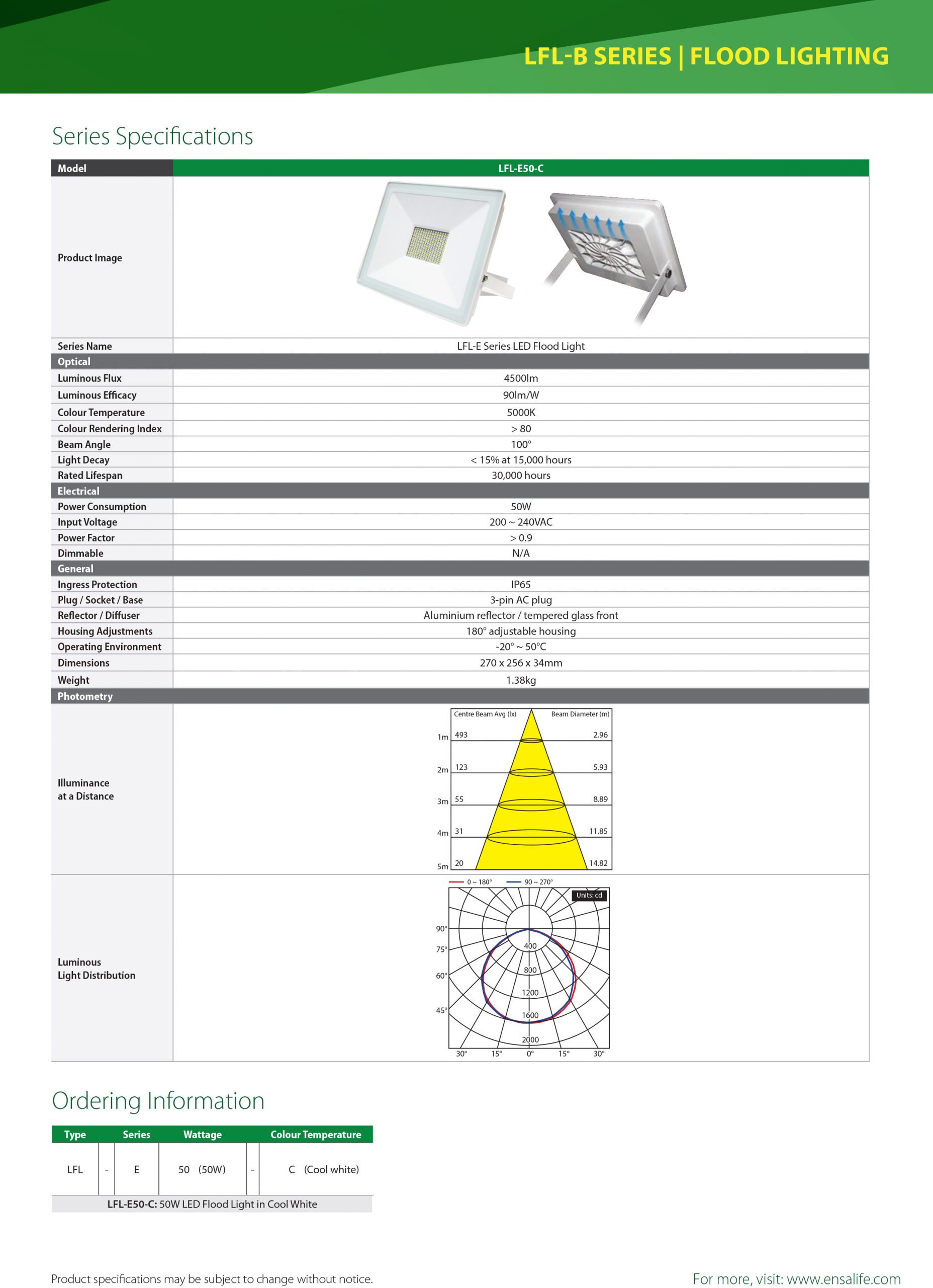 The ENSA™ LFL-E Series LED flood lighting delivers reliable, energy efficient and cost effective flood lighting, ideal for use in residential and commercial environments.