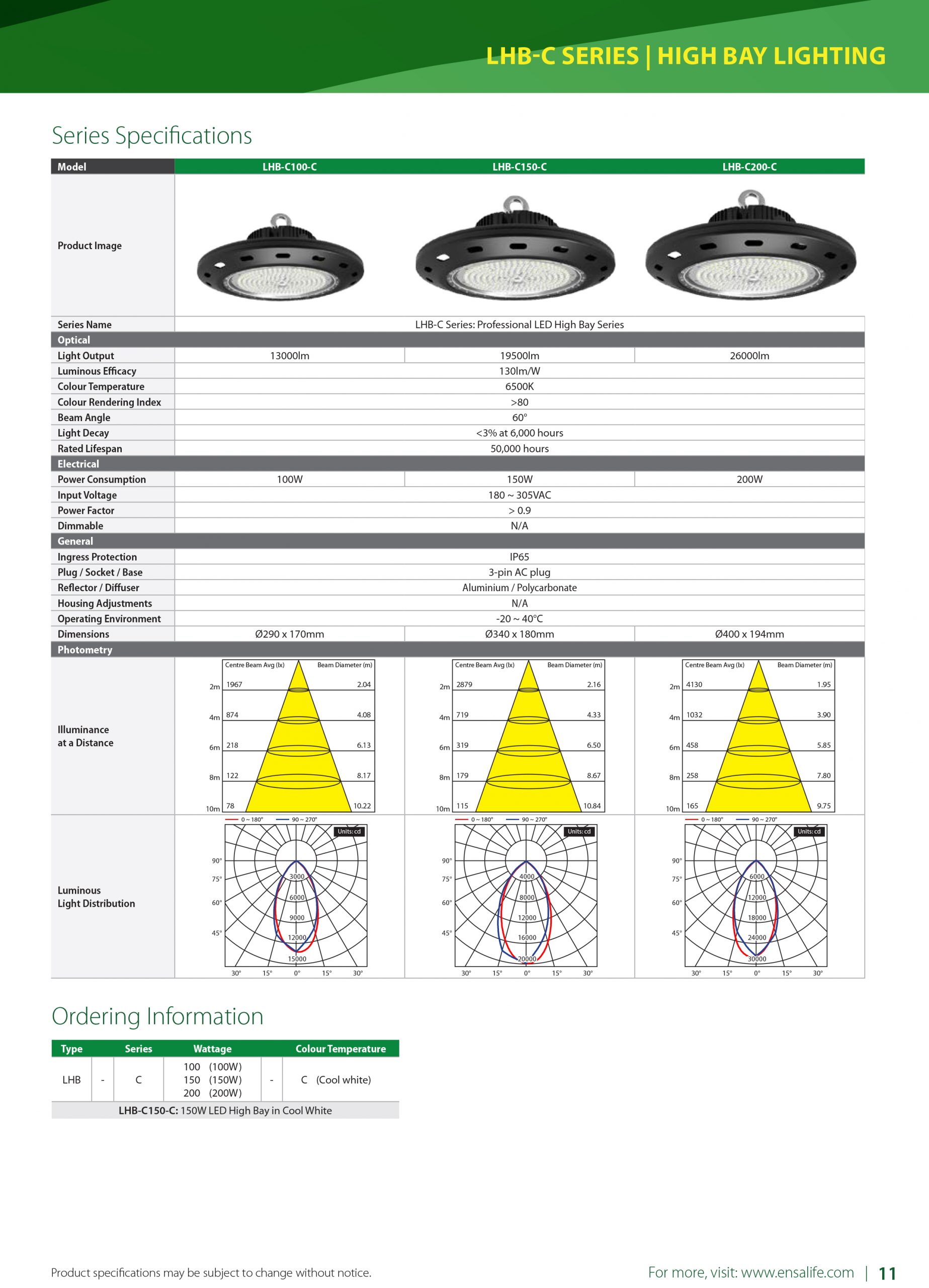 The ENSA™ LHB-C series of professional high bay lights are built to deliver energy efficient lighting to industrial and commercial environments. They are also weather-resistant, making them ideal for outdoor installations and events.