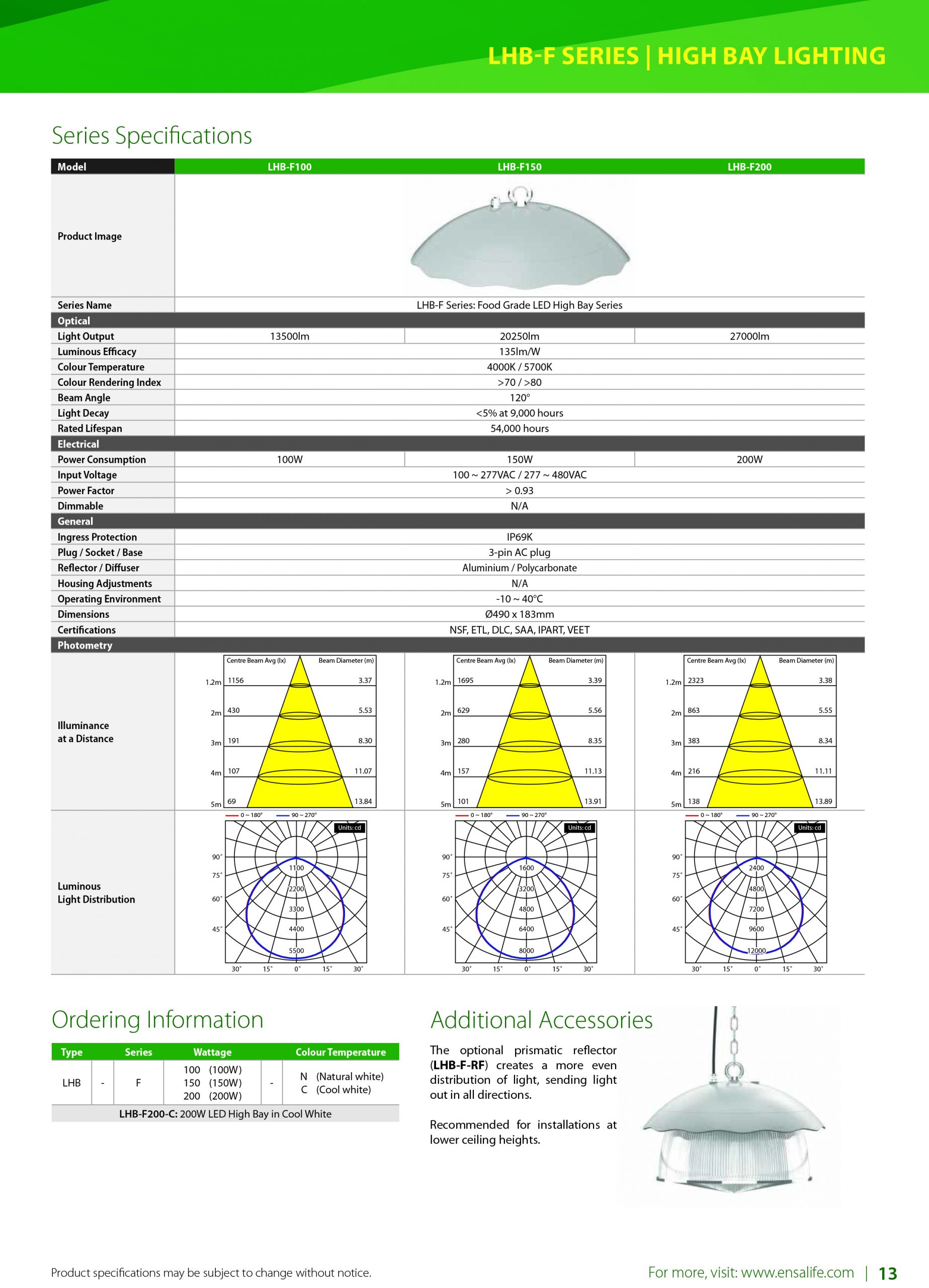 ENSA Professional 200W Food Grade LED High Bay Light (4000K) LHB-F200-N