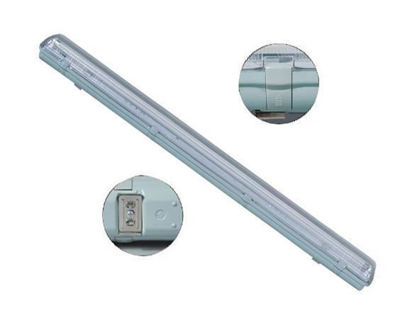 1 x 18W LED Weatherproof Batten has a polycarbonate (RAL 9003) base with a white powder coated steel gear tray reflector. 1 x 18W LED Weatherproof Batten features a shock resistant polycarbonate diffuser UV stabilised with the prismatic interior. 1 x 18W LED Weatherproof Batten maintains high-quality components of stainless steel clips and closed cell polyurethane foam gasket, electronic ballast and lamp holders and cable knockouts with waterproof PP cable glands.