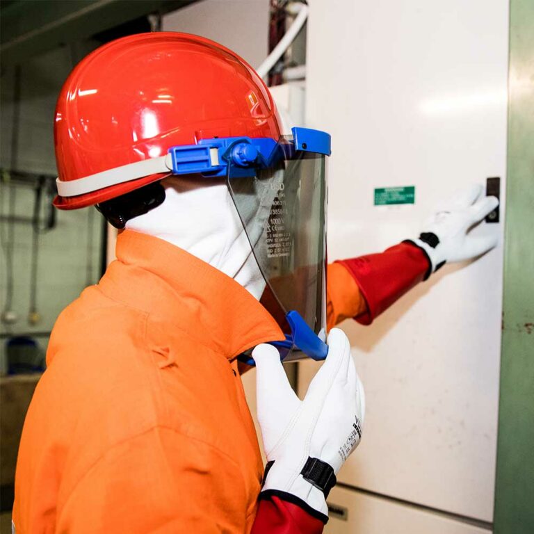 1000V Rated Helmet to connect the face shield to your head and provide Arc flash protection