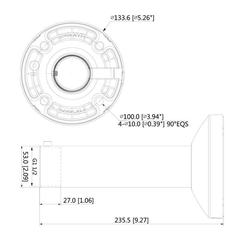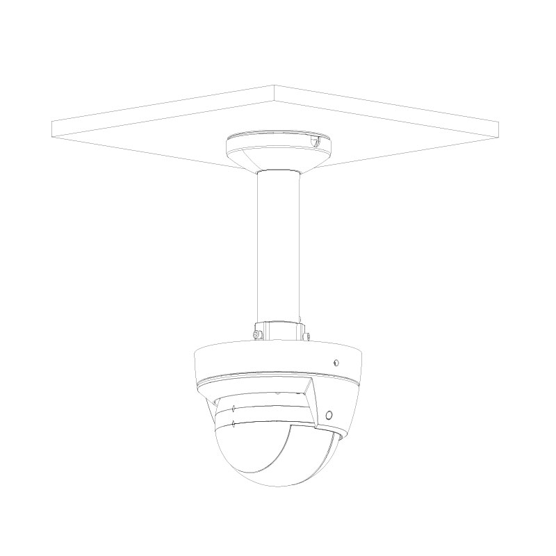 Straight pendant mount bracket for surveillance cameras. Screw-on extenders also available.