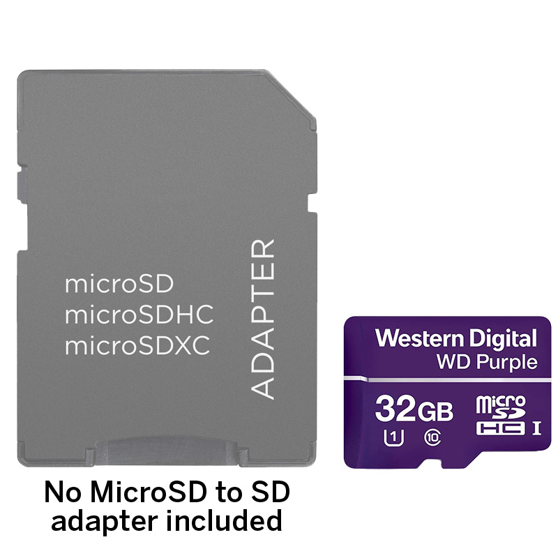 WDSD32GB is a surveillance grade MicroSDHC card with 32GB of storage. Record on-the-edge footage and save it directly onto MicroSD with any of our SD-compatible cameras.