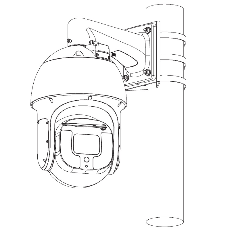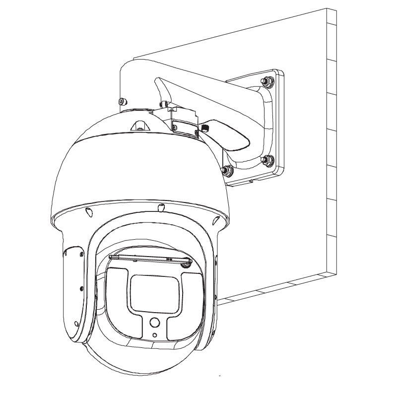This PTZ dome camera comes standard with a right angle bracket and AC power supply.