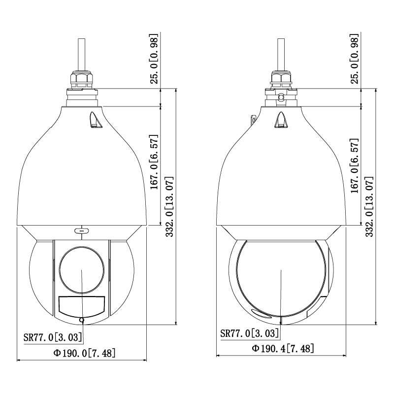 • 25x optical zoom lens (61.6°~3.6° viewing angles)