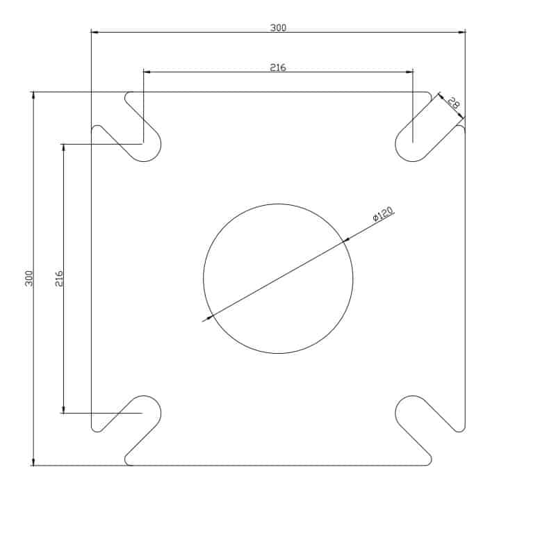 Includes bolt template: 350 x 350mm, 20mm galvanised