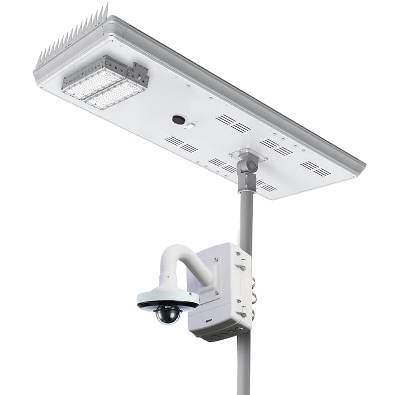 The solar panel unit features a 60W LED area light with microwave motion detection, which can be customised to your specifications. The entire system is powered by a rechargeable a 1200Wh Lithium Iron Phosphate (LiFePo₄) battery. The LED area light and the LiFePo₄ battery are all combined into the one solar panel unit.