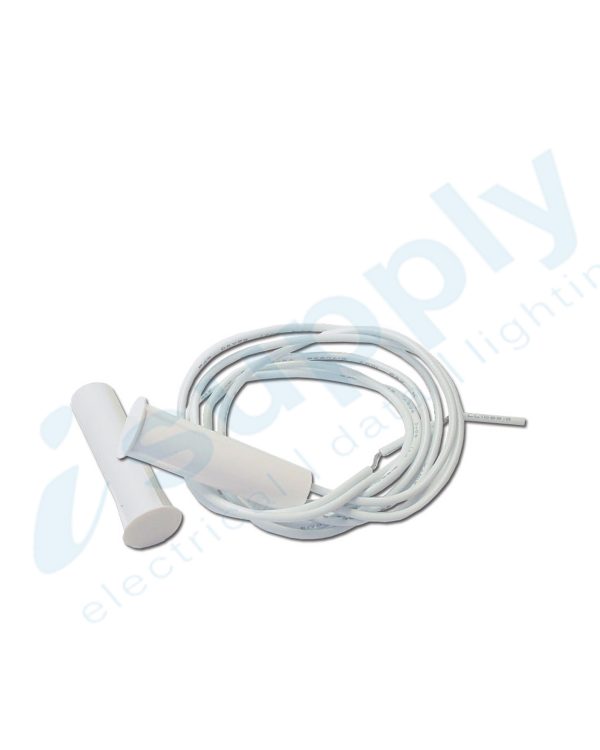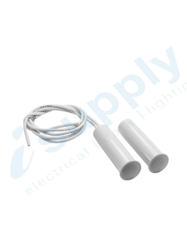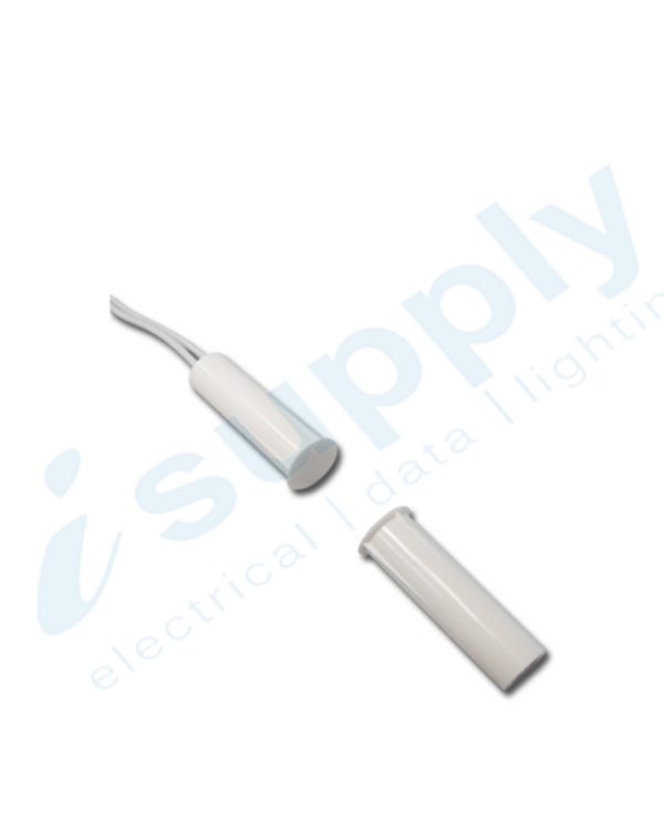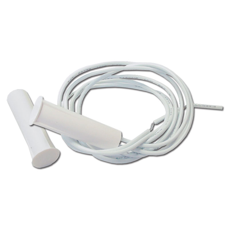 Hardwired, normally closed, concealed reed switch, perfect for mounting in the tops of doors or hidden areas.